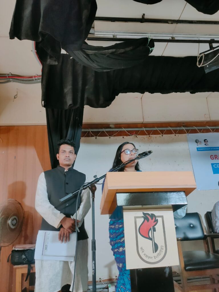 অনুষ্ঠানে স্বাগত বক্তব্য দেন আইসিটি ডিভিশন এর আওতায়, বাংলাদেশ হাই-টেক পার্ক কর্তৃক নিয়ন্ত্রণাধীন, শেখ কামাল আইটি ট্রেনিং এন্ড ইনকিউবেশন সেন্টার স্থাপন প্রকল্পের প্রজেক্ট কো-অর্ডিনেটর মোঃ মিজানুর রহমান (পলাশ ) অন্যদের মধ্যে বক্তব্য দেন প্রশিক্ষণের ট্রেইনার রেজাউল করিম ও খোদেজা আক্তার নয়ন ও মাহবুবুর রহমান প্রমুখ।