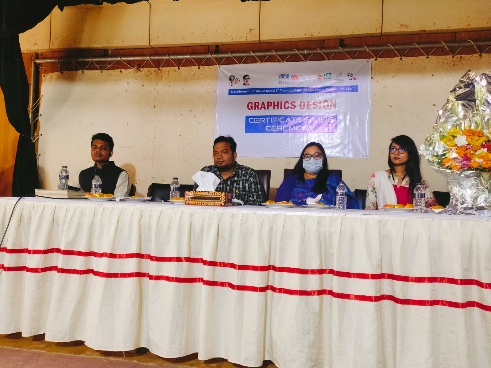 আইসিটি ডিভিশন এর আওতায়, বাংলাদেশ হাই-টেক পার্ক কর্তৃক নিয়ন্ত্রণাধীন, শেখ কামাল আইটি ট্রেনিং এন্ড ইনকিউবেশন সেন্টার স্থাপন প্রকল্পের ‘গ্রাফিক্স ডিজাইন’ পরীক্ষায় উত্তীর্ণ প্রশিক্ষণার্থীদের মধ্যে সনদ বিতরণ ও সম্মাননা স্মারক প্রধান করা হয় ৷